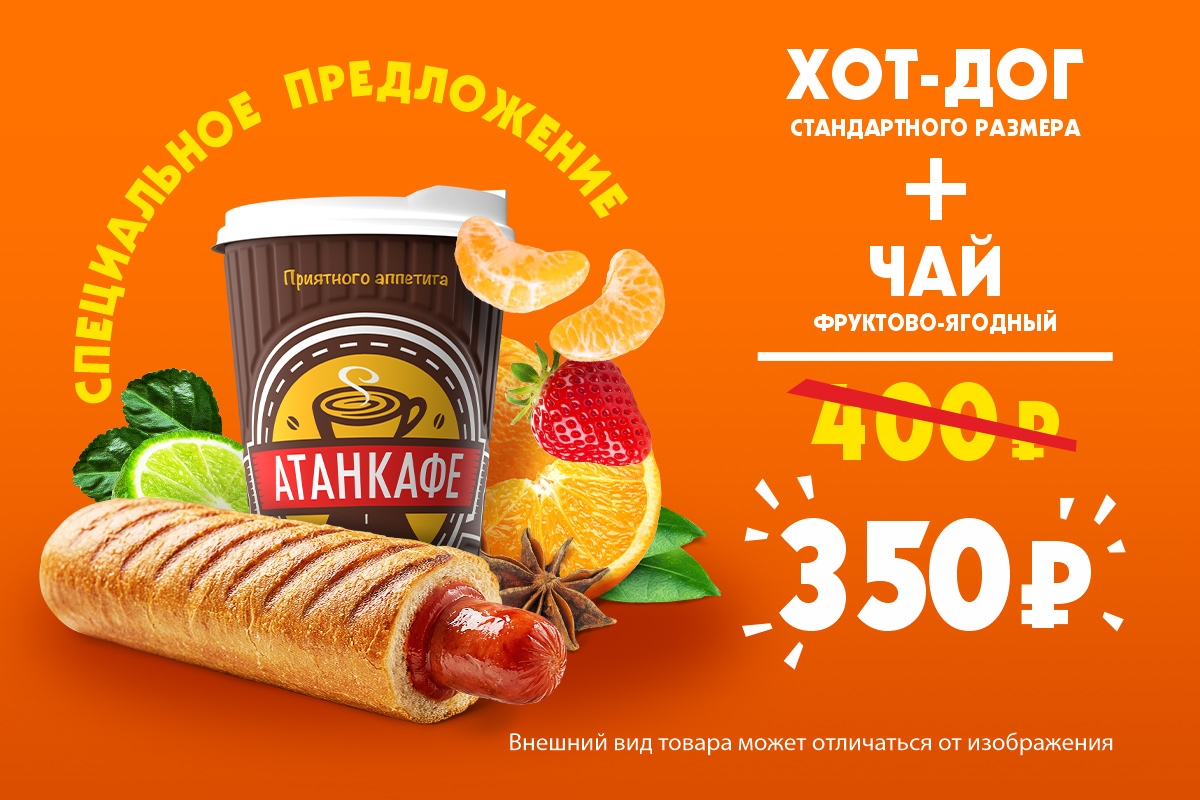 Специальное предложение: Фруктово-ягодный чай + фирменный Хот-Дог стандартного размера за 350 рублей!